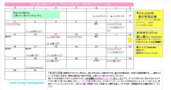 「おぼろ月夜」が体にまでやってこないように、春のヨガは取り込む、出し切る、で楽しんでいただきたいと思っています。