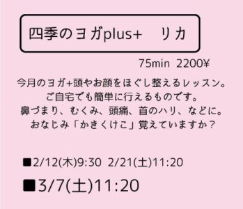 2月からの花粉症小顔ヨガもあります。